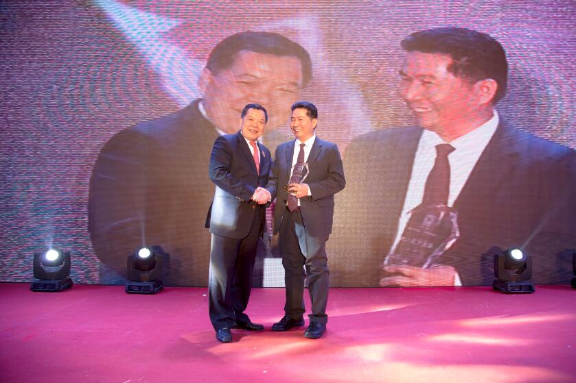 建藝集團(tuán)監(jiān)事會(huì)主席兼工程管理中心總監(jiān)陳景輝(右一)榮獲二十年功勛人物獎(jiǎng)