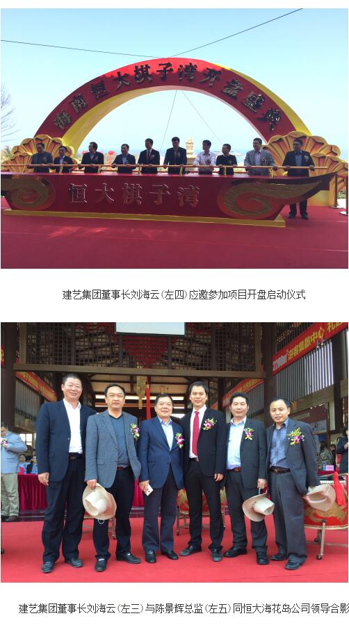 近日,經(jīng)過前期的緊張施工,恒大海南棋子灣項(xiàng)目隆重開盤。建藝集團(tuán)董事長(zhǎng)劉海云、建藝集團(tuán)監(jiān)事會(huì)主席兼工程管理中心總監(jiān)陳景輝等高管應(yīng)邀參加了項(xiàng)目開盤暨合作單位錦旗頒發(fā)儀式。開盤儀式上,在鑼鼓喧天、煙花盛放的喜慶氛圍中,劉海云董事長(zhǎng)與恒大?;◢u公司及其他單位領(lǐng)導(dǎo)共同推動(dòng)了象征著正式開盤的推桿。期間,劉海云董事長(zhǎng)還與恒大?;◢u公司董事長(zhǎng)章為黨、總經(jīng)理黃宏勇、副總經(jīng)理朱心源、副總經(jīng)理李國正等進(jìn)行了親切友好的交談,雙方對(duì)于后續(xù)即將進(jìn)行的?;◢u項(xiàng)目及棋子灣項(xiàng)目的合作事宜達(dá)成了共識(shí)。