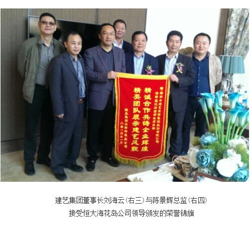 作為合作伙伴,海花島公司全體領(lǐng)導(dǎo)一致對(duì)建藝集團(tuán)在前期合作中展現(xiàn)出的專業(yè)、誠信、創(chuàng)新、卓越的企業(yè)理念表示極大的認(rèn)同,對(duì)項(xiàng)目部在施工過程中所表現(xiàn)出的不畏艱難、上下一心、能打仗、打硬仗、全力配合甲方的團(tuán)隊(duì)精神表示高度贊揚(yáng),對(duì)于建藝集團(tuán)工程人員能夠在如此極端艱苦的條件下,忘我的拼搏付出,以高度負(fù)責(zé)的敬業(yè)精神如期完成任務(wù),保證了項(xiàng)目的開盤表示了感謝并向建藝集團(tuán)頒發(fā)錦旗。