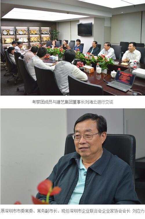 近日,深圳市原市委常委、常務(wù)副市長、現(xiàn)任深圳市企業(yè)聯(lián)合會/企業(yè)家協(xié)會(以下簡稱深企聯(lián))會長劉應(yīng)力及深企聯(lián)常務(wù)副會長王志國等領(lǐng)導(dǎo)同4月赴印度、尼泊爾考察團成員一起到訪建藝集團總部。劉海云董事長熱情迎接了到訪領(lǐng)導(dǎo)及成員,并向考察團成員介紹了建藝集團發(fā)展情況。期間,考察團成員們在劉海云董事長的帶領(lǐng)下,參觀了建藝集團機關(guān)和設(shè)計研究院。