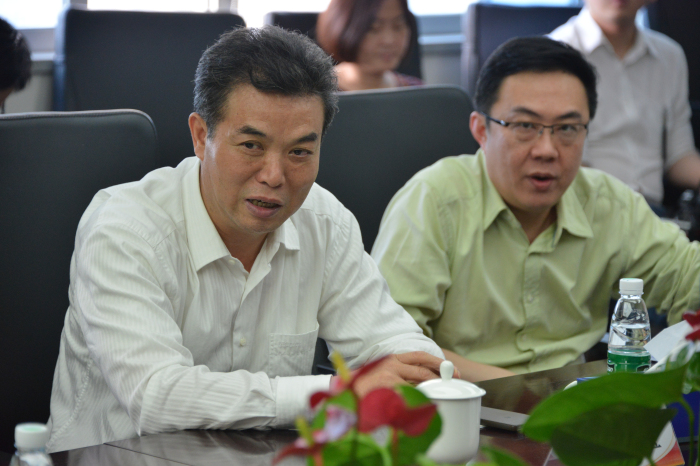 與會的區(qū)領(lǐng)導(dǎo)在認真聽取劉海云董事長的匯報