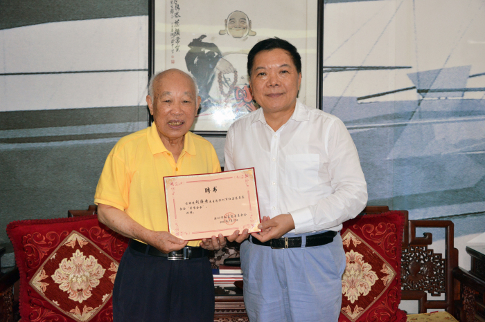 作為一名關(guān)心公益、富有社會責(zé)任感的優(yōu)秀企業(yè)家,劉海云董事長長期以來始終熱心慈善事業(yè),在《2016年度深圳慈善捐贈個人榜》上名列第5位(紅荔慈善捐贈榜第一位)。鑒于劉海云董事長長期以來在慈善事業(yè)方面所做出的卓越貢獻和成績,會談期間,黃南美先生代表基金會向劉海云董事長頒發(fā)“深圳市紅荔慈善基金會‘榮譽會長’”聘書并合影留念。