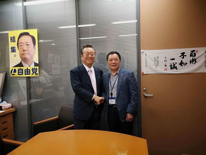 小澤一郎議員(左一)熱情接見劉海云董事長(zhǎng)
