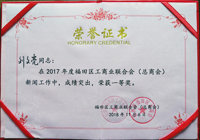 建藝集團連續(xù)三年蟬聯(lián)福田區(qū)工商聯(lián)(總商會)新聞工作第一名