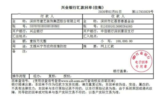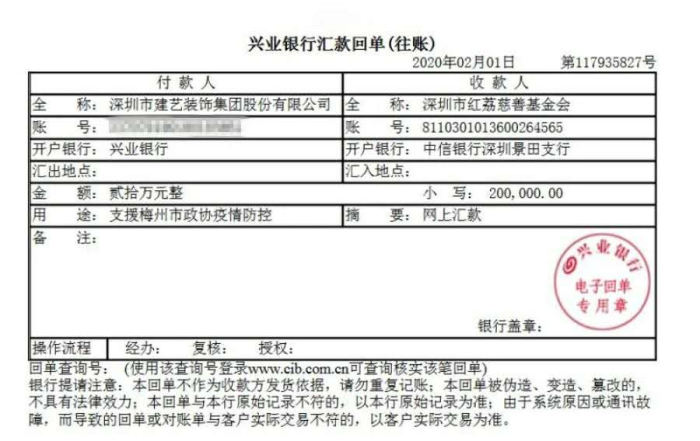 面對當(dāng)前嚴(yán)峻的新型冠狀病毒感染的肺炎疫情防控形勢,建藝集團(tuán)繼1月28日向武漢市慈善總會捐款50萬元全力支援疫情防控工作后,再次于1月30日對口支援梅州地區(qū)1萬支口罩以緩疫情防控燃眉之急。今日,建藝集團(tuán)再次分別向梅州市政協(xié)及興寧市人民政府捐款20萬元及10萬元,積極為梅州地區(qū)疫情防控提供幫助。截至目前,建藝集團(tuán)已累計捐款80萬元用于疫情防控,用行動踐行中國上市企業(yè)的社會責(zé)任與使命擔(dān)當(dāng)。