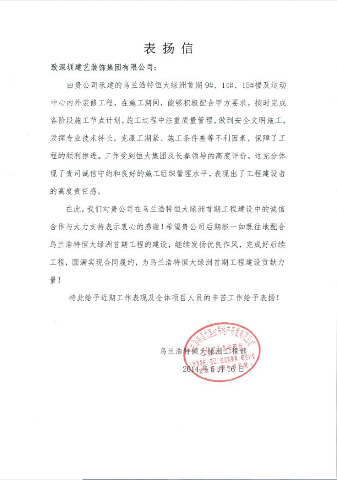 [上一篇]一封來自大連恒大帝景項目部的表揚(yáng)信