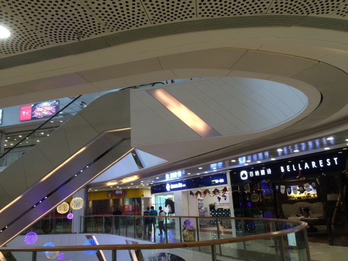 施工當中,為確保工程質量和材料供應,建藝集團項目部更是嚴格按照圖紙和規(guī)范施工,嚴格要求每個細節(jié)。所有施工方案,都是管理人員現(xiàn)場采集數(shù)據(jù)后在電腦上排版確定,經復核無誤后再下單;所有石材鋪貼,都是經過多次比選后,再選擇最優(yōu)效果方案進行施工;凡是幾何尺寸較差,有錯縫情況的石材,一律及時更換;在施工的過程中分清先后、突出重點,先圍繞核心筒、柱子和控制線等關鍵部位展開鋪貼,再依次收尾,使得整個購物中心線條整齊且石材美觀大氣。此外,針對鋁單板及異型條形百葉風口生產廠家供貨不及時和經常加工尺寸出現(xiàn)錯誤的情況,項目部抽出專人前往生產廠家駐場與加工廠生產工人同吃同住,監(jiān)督廠家的生產任務及協(xié)助加工尺寸的復核,保證了材料的及時供應。